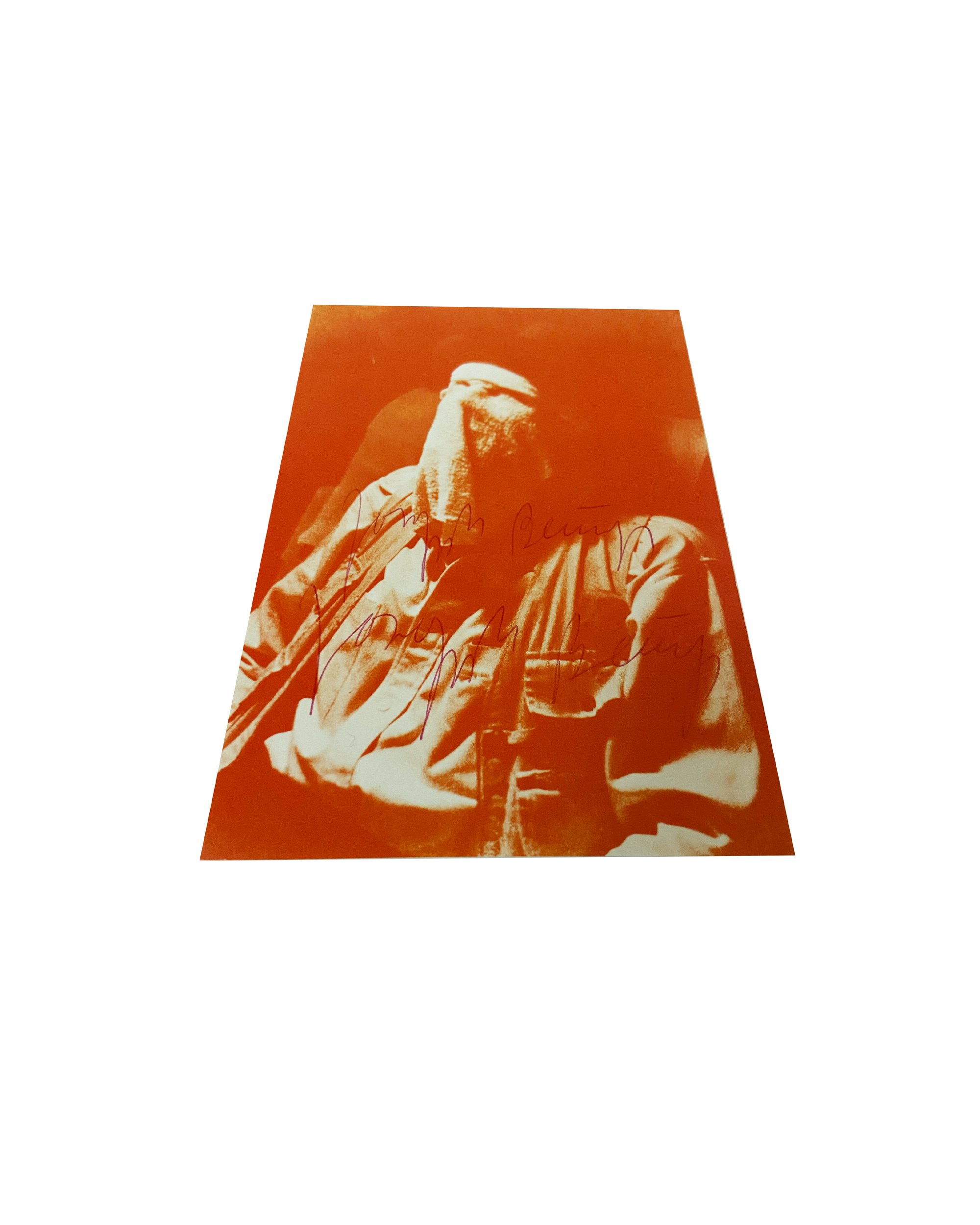 The card was signed twice by Beuys. With a red ballpoint pen. (The card is sold without a frame.)